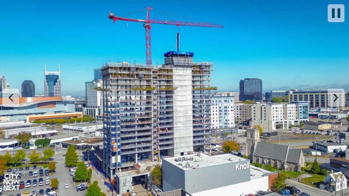 Nashville News - Ray Nashville tower development in downtown Nashville is starting to take shape. Construction crews have made it past the first half of Ray Nashville, a distinctive 32-story residential tower. (CityNowNext).