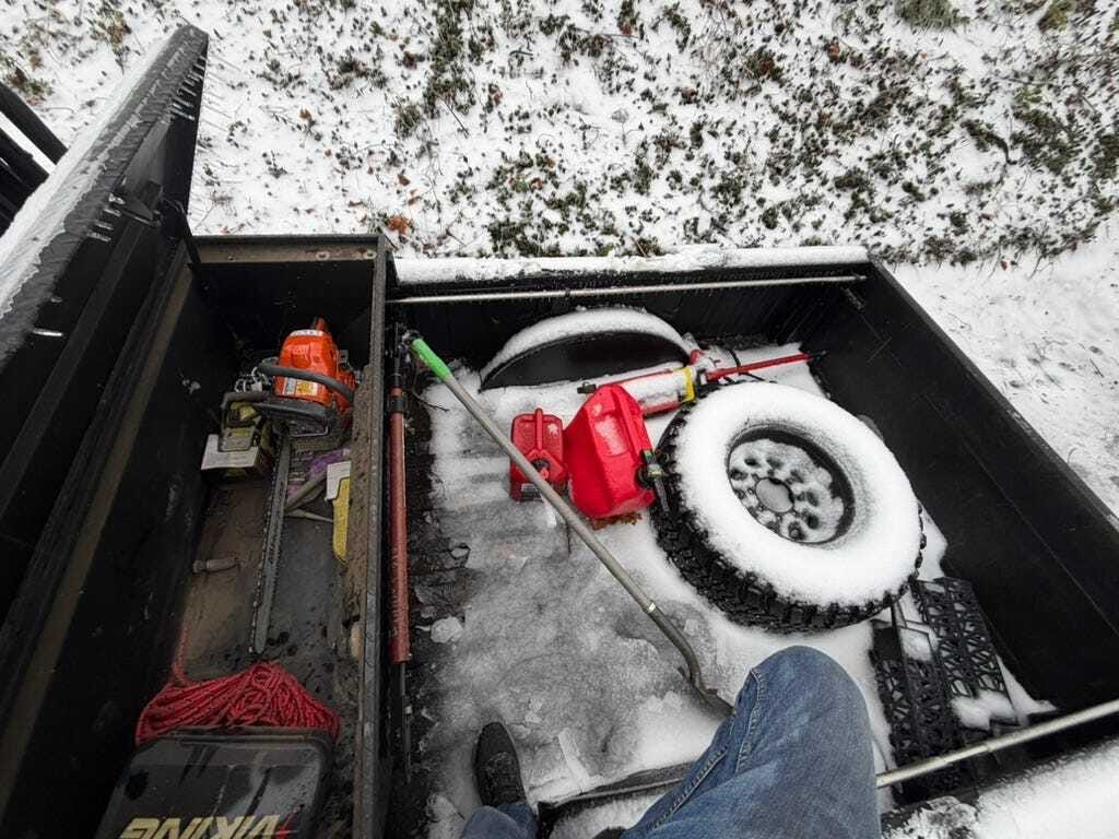 Then I threw the saw, shovel, jack, spare tire, and extra gas can in the back of the truck like it was the zombie apocalypse.