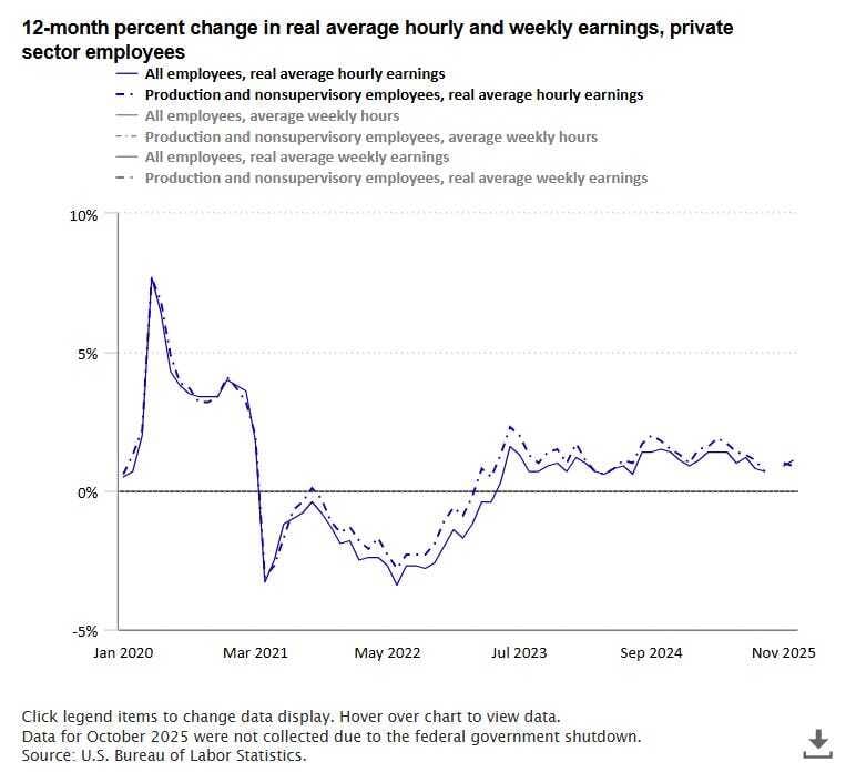 Speaking of the BLS, real average hourly earnings for all employees increased 1.1% YoY, a positive move but also cooling (BLS).