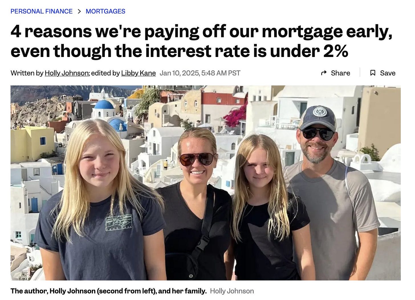 It detailed a lovely family who was being interviewed about their decision to pay off their mortgage early.