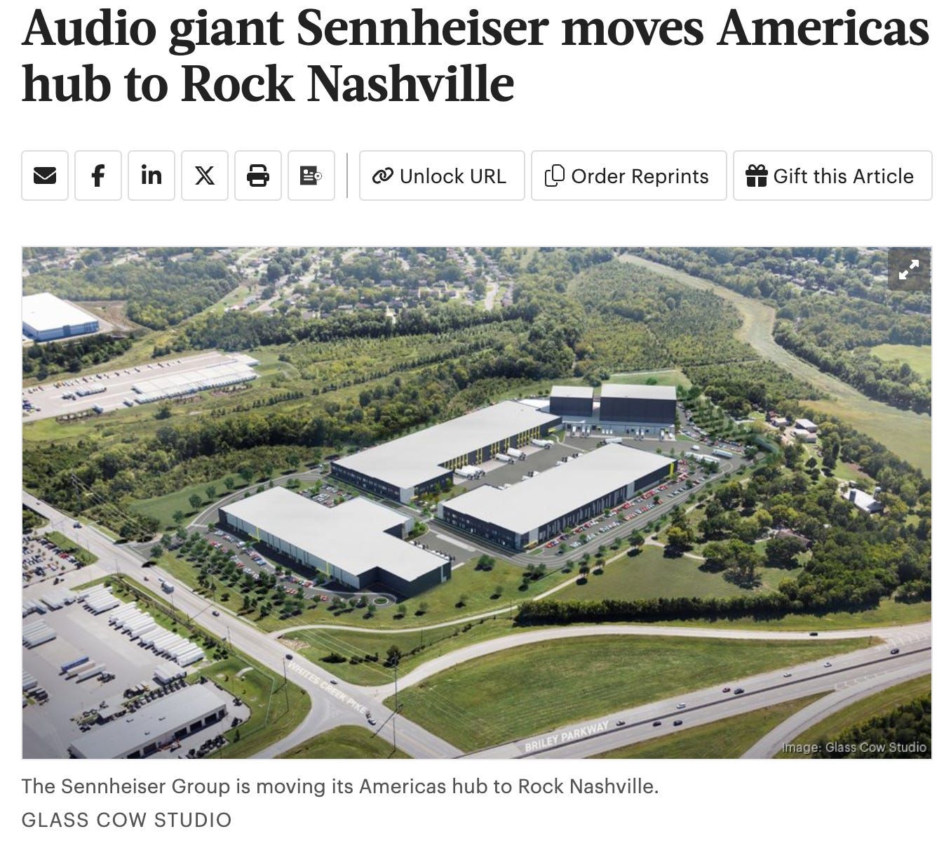Nashville News #2 - Audio giant Sennheiser moves Americas hub to Rock Nashville, from Connecticut. The Germany-based audio company will invest $2.5 million and create 25 jobs (BizJournal).