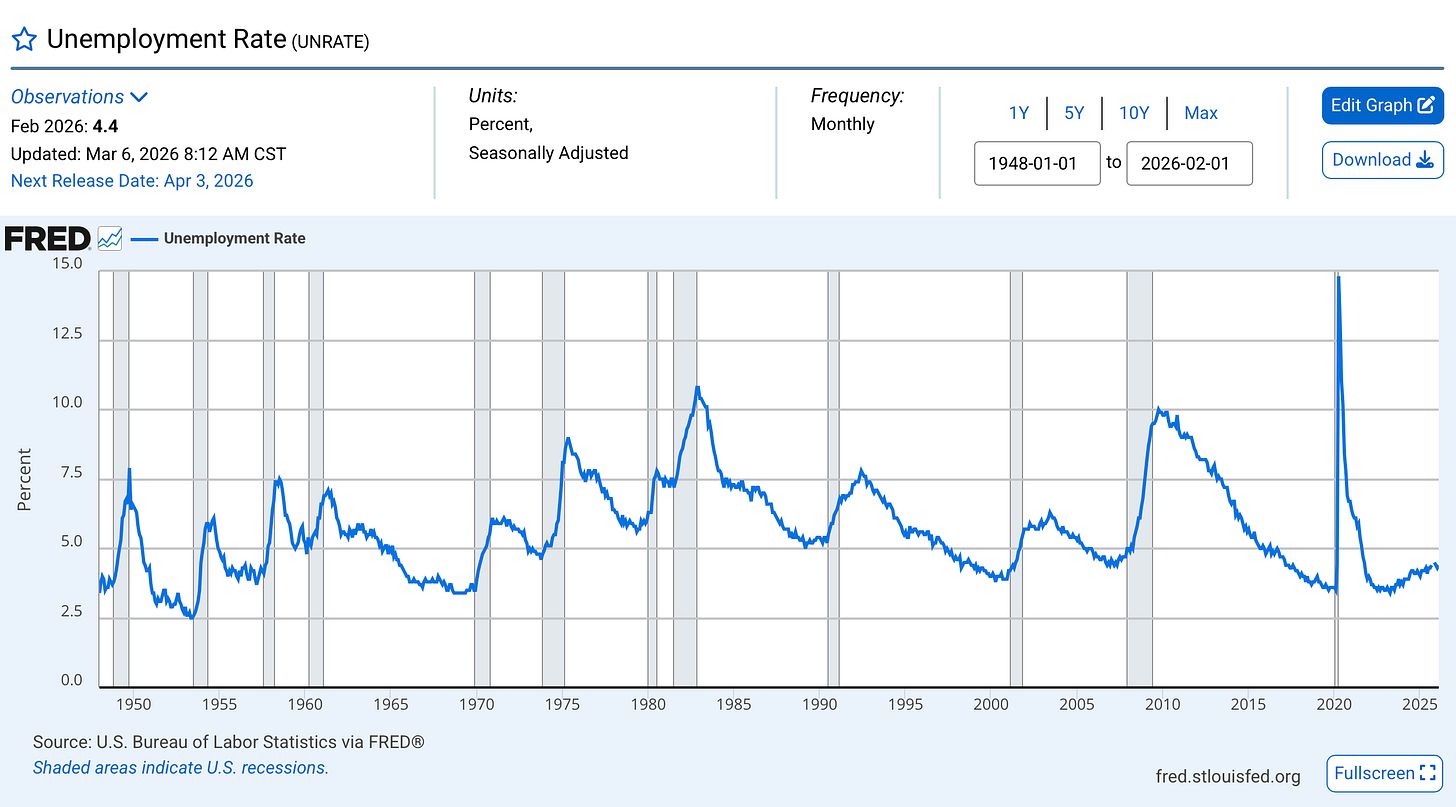 We are still at historically normal unemployment rates. 5% unemployemt is considered “full employment” in economics, as new market entrants (ie college graduates), folks switching from job to job, etc…At this point, the labor market is tight enough that nearly everyone who wants a job can find one at prevailing wages, but not so tight that it sparks wage spirals and runaway inflation.