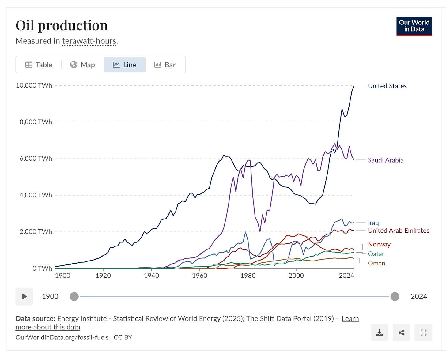 Even though the US does not rely on oil supplied from the Middle East anymore (we have been a net exporter of fossil fuels since ~2019, and the world’s largest producer since 2017), oil is a globally traded commodity, priced on international benchmarks like Brent crude, rather than isolated domestic markets. When supply is disrupted anywhere, it reduces overall global availability, creating a supply deficit that drives up prices worldwide as buyers pay more to buy from other sources. So, this isn’t about oil needing to be supplied back to the US; it’s about basic market dynamics. US producers and refiners sell and buy at these global rates, so higher world prices mean higher costs get passed to US consumers at the pump.