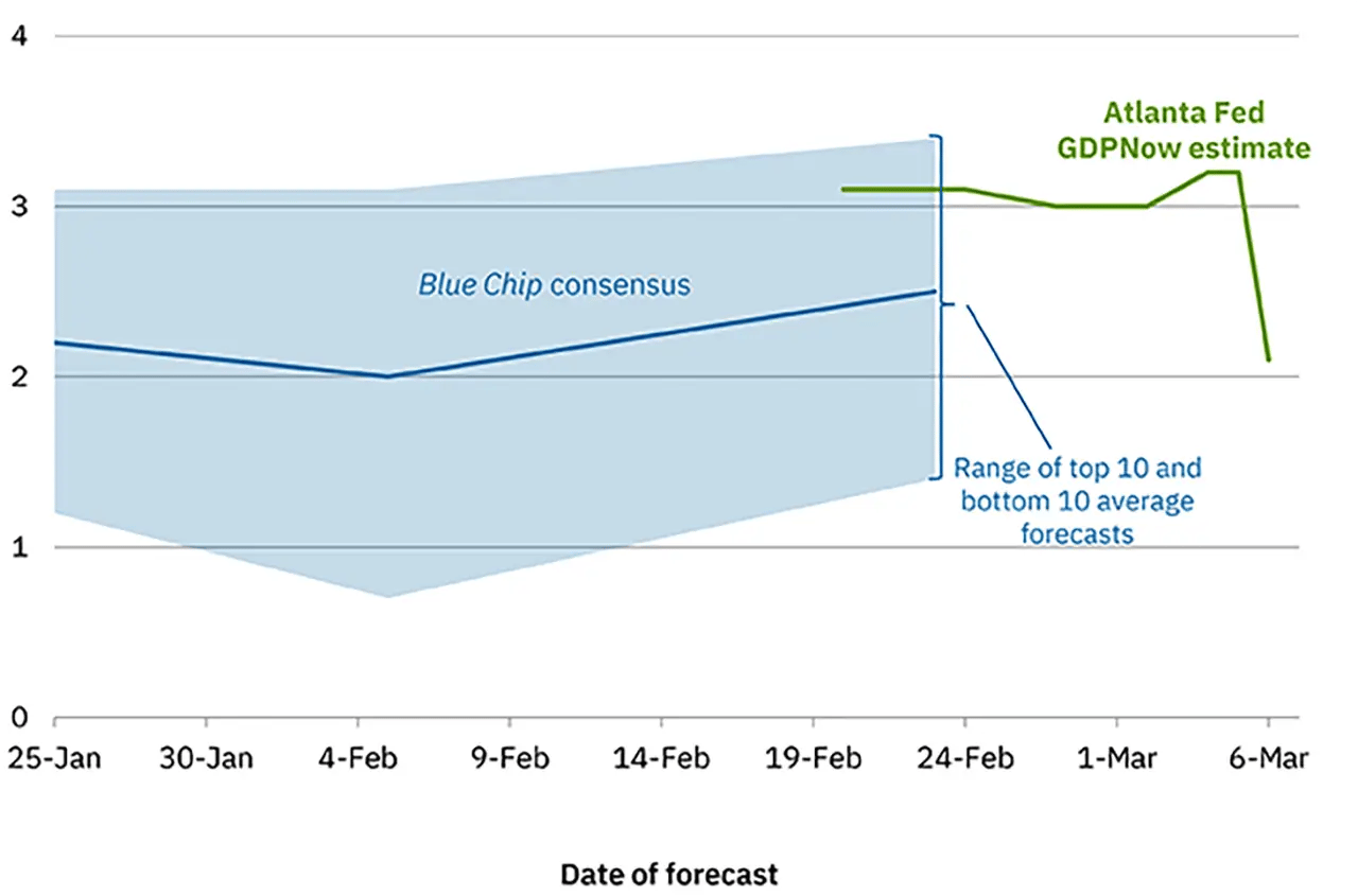 Just look at the Atlanta Fed GDP estimate, which has been revised down a full percentage point for Q1 2026, from 3.1%% to just 2.1%.