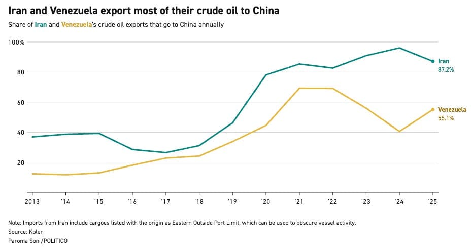 And, further, much of China’s oil imports come from Iran directly. In fact, China buys nearly 90% of Iran’s total exported oil.