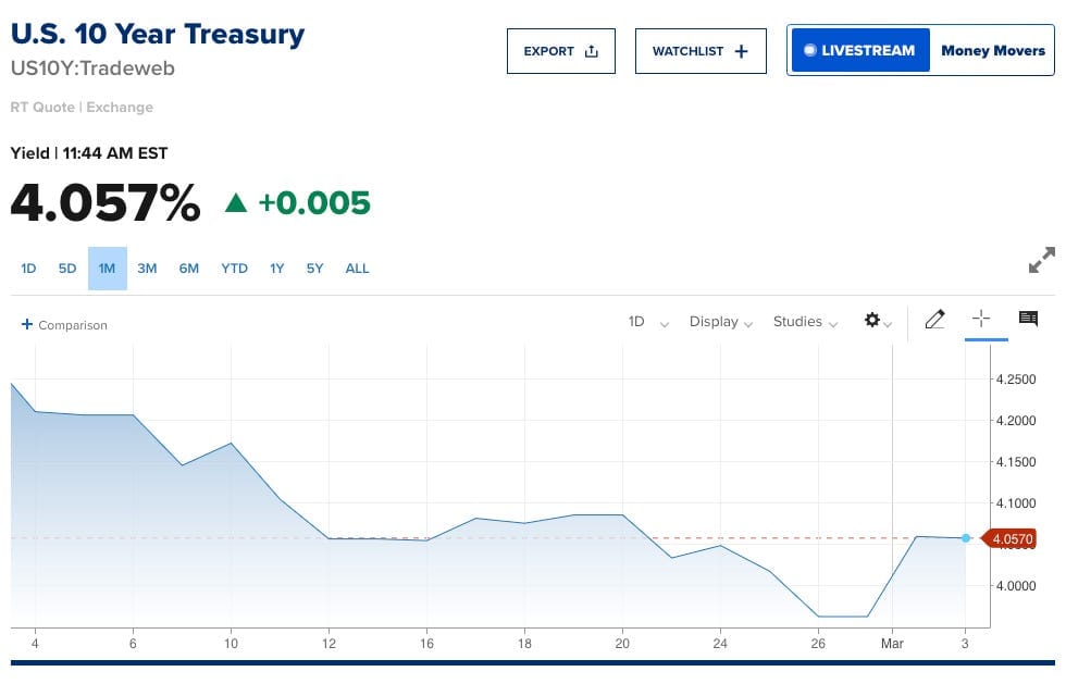 As I write, the 10-yr Treasury bond is trading at 4.057%, up from 3.96% last week.